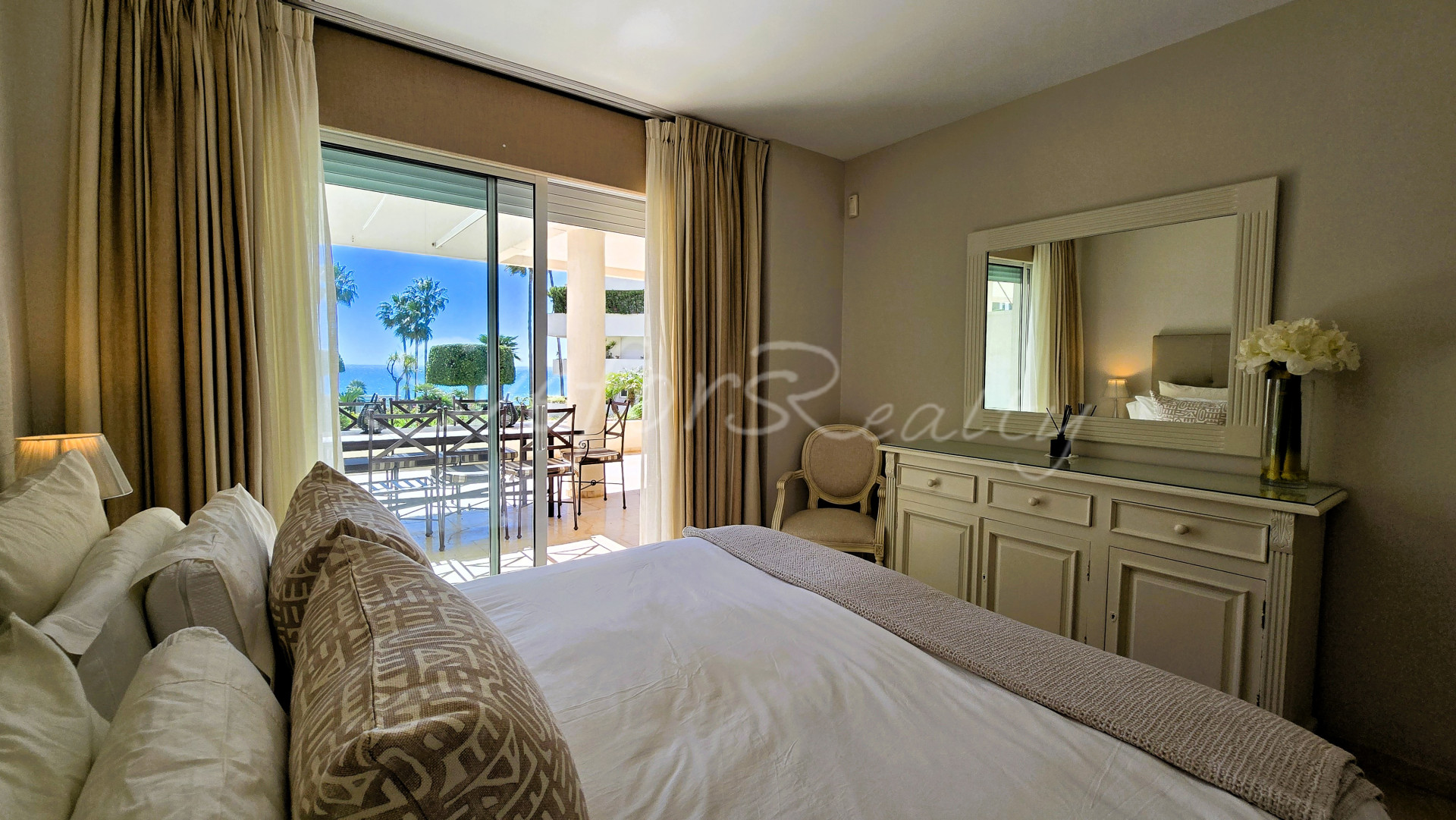 Bright South facing 3 bedroom apartment, with uninterrupted 180º sea views located first line beach of the New Golden Mile.
