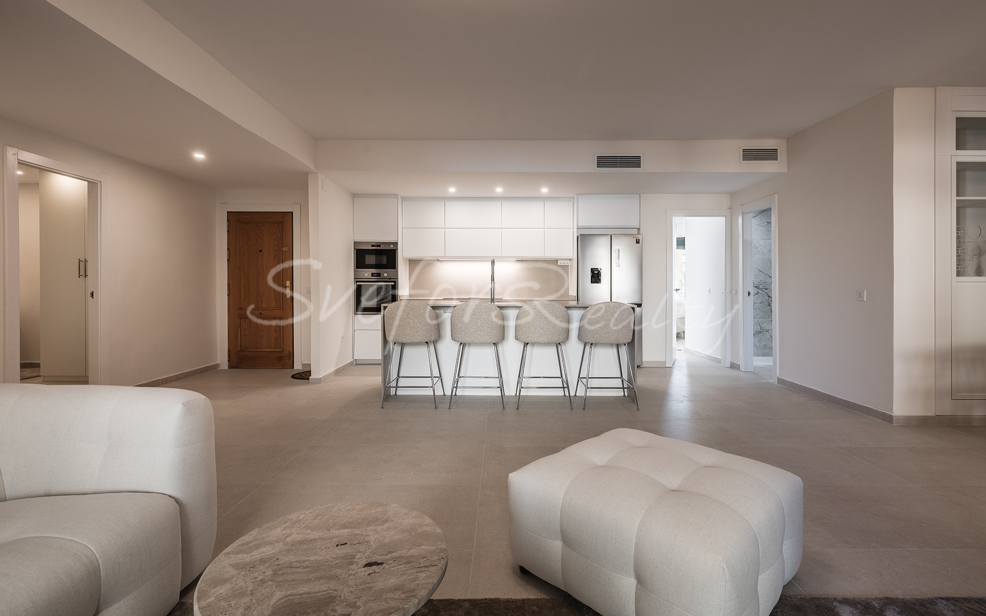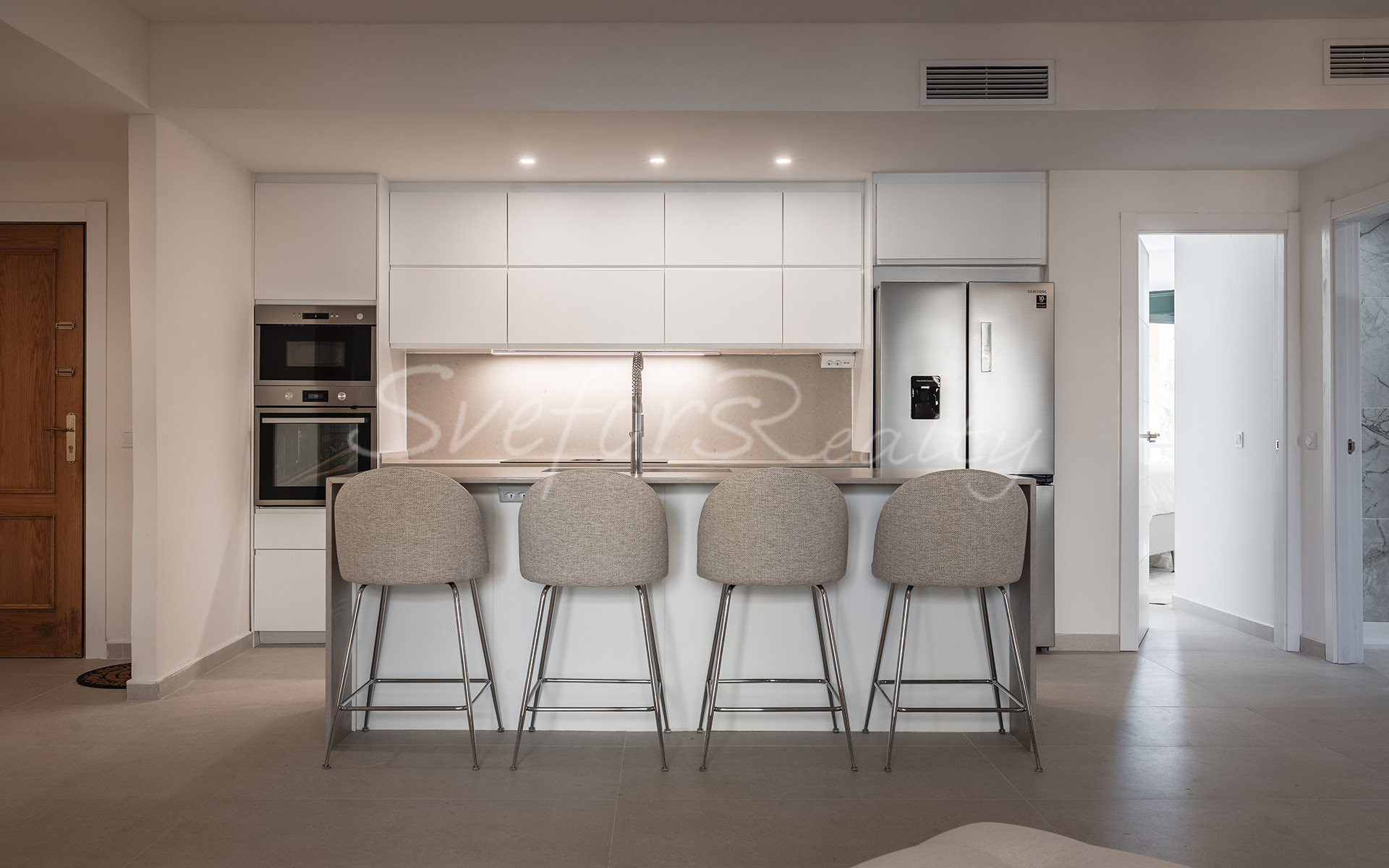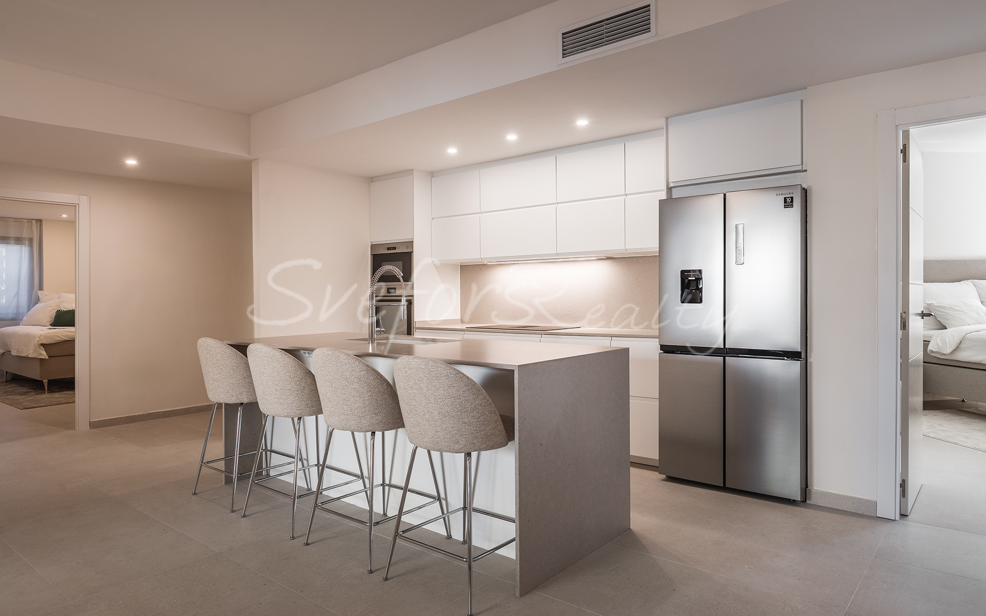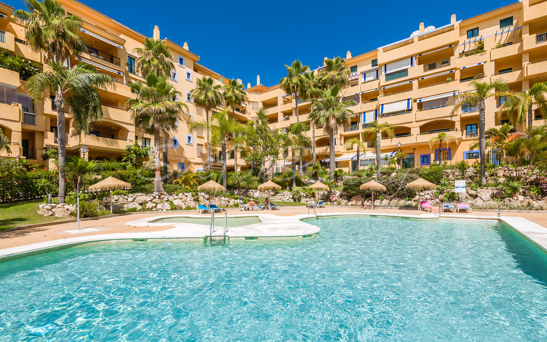 Ubicado a pocos pasos de la playa, tiendas boutique, cafeterías y colegios de primer nivel, este apartamento de 4 dormitorios en Los Almendros, San Pedro de Alcántara, combina comodidad, conveniencia y vida costera. La luminosa distribución de planta abierta cuenta con cuatro amplios dormitorios, tres baños modernos y una cocina premium totalmente equipada. Un generoso salón-comedor se abre a una terraza privada, ideal para disfrutar del café por la mañana o cócteles al atardecer. Los residentes disfrutan de jardines paisajísticos, piscina comunitaria y confort durante todo el año gracias al aire acondicionado. Armarios empotrados y una plaza de garaje subterránea opcional (€25,000) completan la oferta.