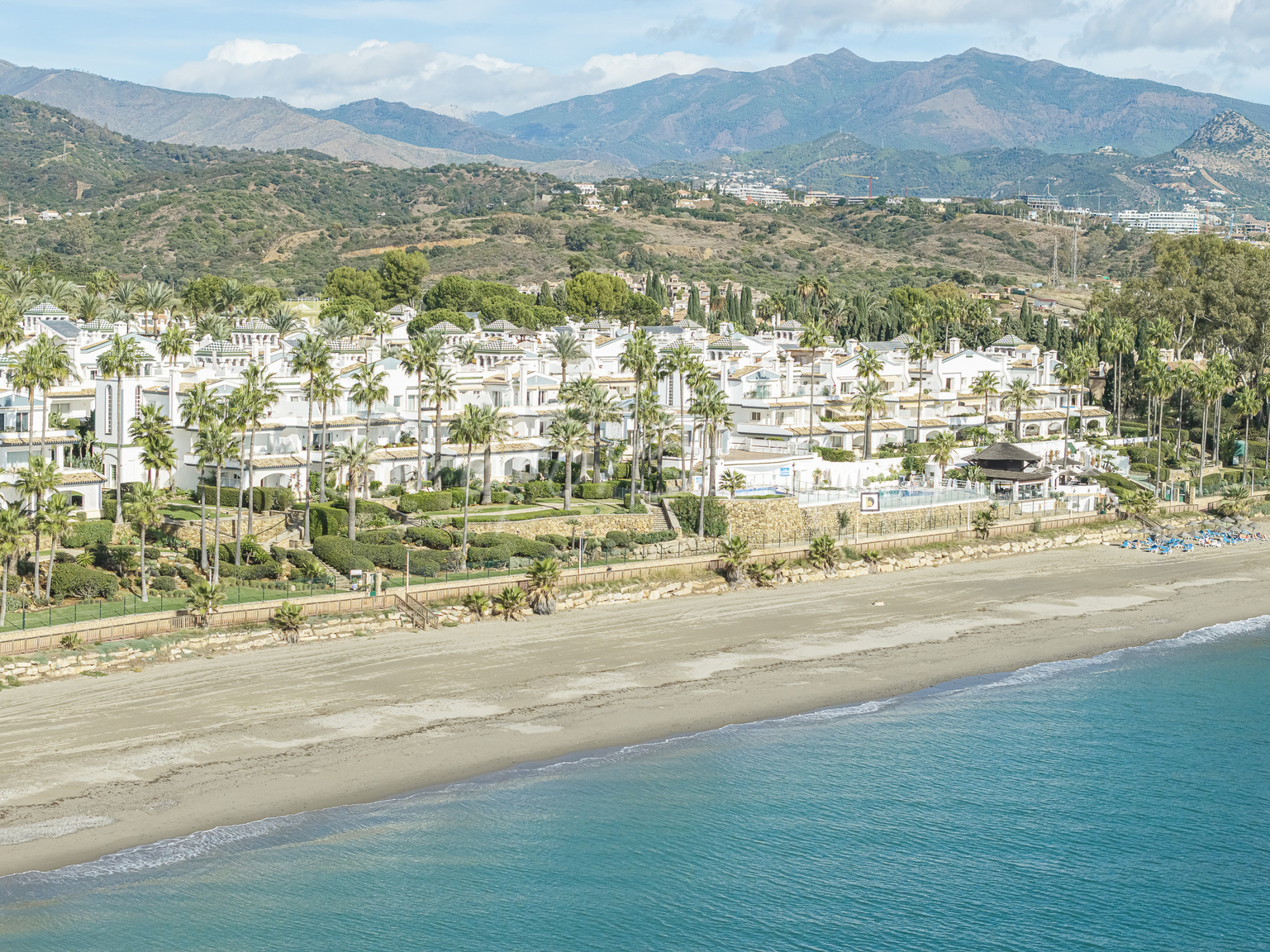 Dominion Beach is a prestigious frontline beachfront community on the New Golden Mile, known for its immaculate subtropical gardens, direct beach access, 24h security, and serene resort-like atmosphere. With beautifully designed pool areas, wide promenades, and an on-site restaurant, the community offers a refined Mediterranean lifestyle just moments from the sea.